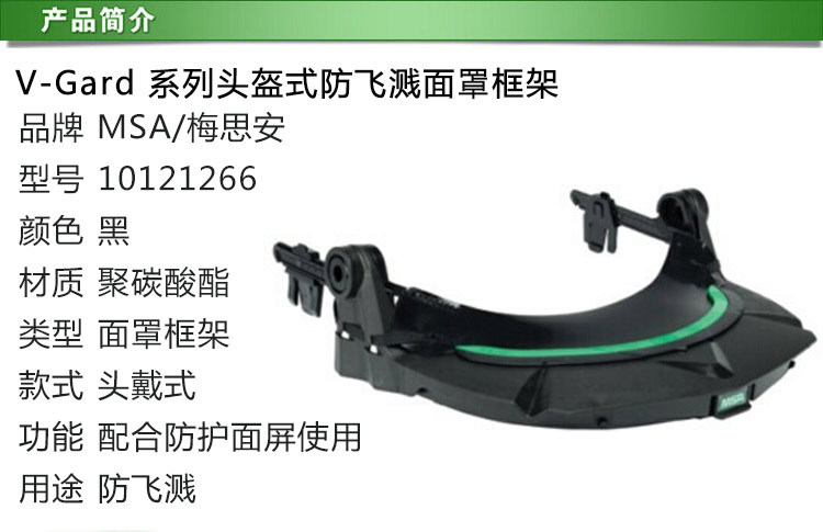 梅思安10121266面屏支架 防飞溅面罩支架 V-Gard护面板框架