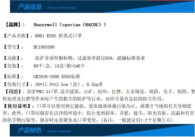 霍尼韦尔H901折叠式口罩 KN90级防雾霾口罩